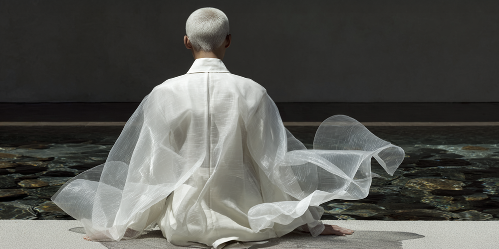 解构东方袍服与当代律动, 于褶皱间藏山水呼吸。